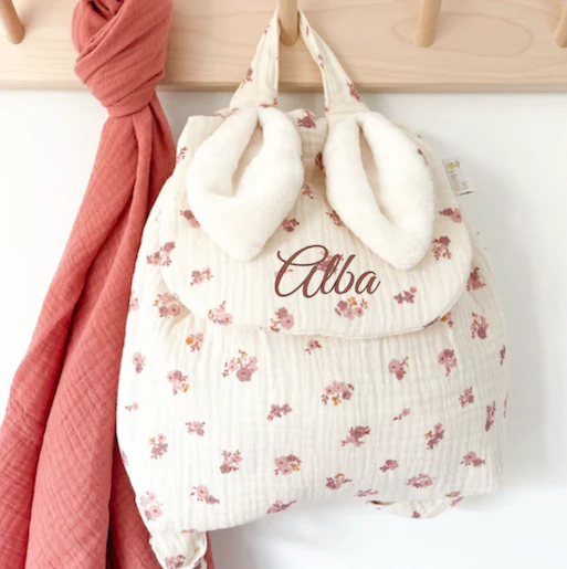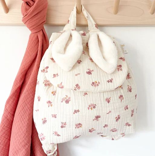 Entièrement confectionné à la main en gaze de coton, ce joli sac à dos accompagnera votre petit bout dans tous ses déplacements !