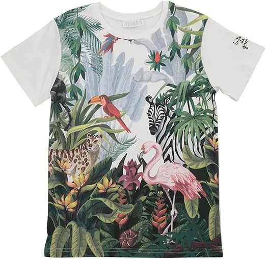 Manches courtes, Col rond, Coupe droite, Imprimé jungle all-over