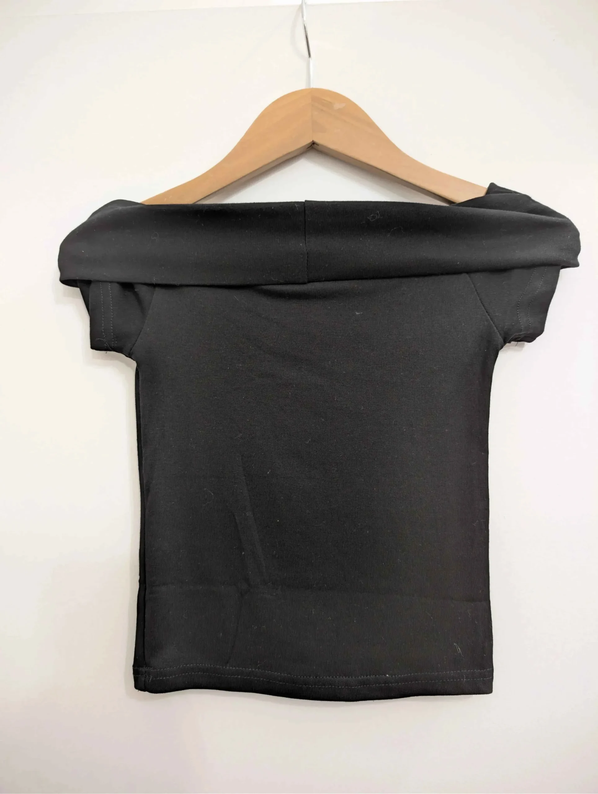 T-shirt noir original avec encolure large et épaules dégagées, décoré de trois étoiles en strass à l’avant. Confortable et stylé, il apporte une touche brillante et moderne à toutes les tenues.