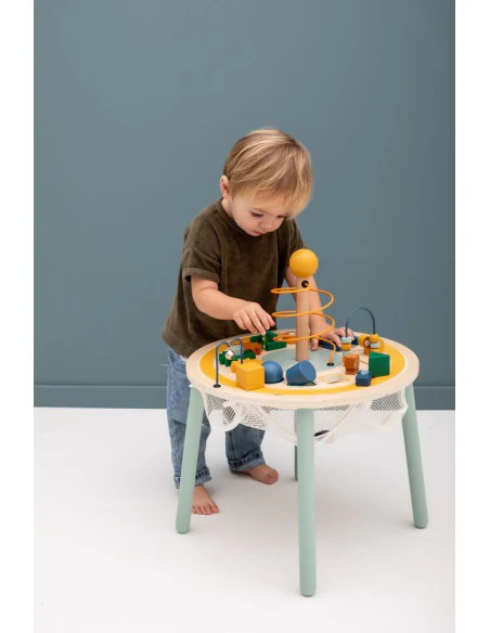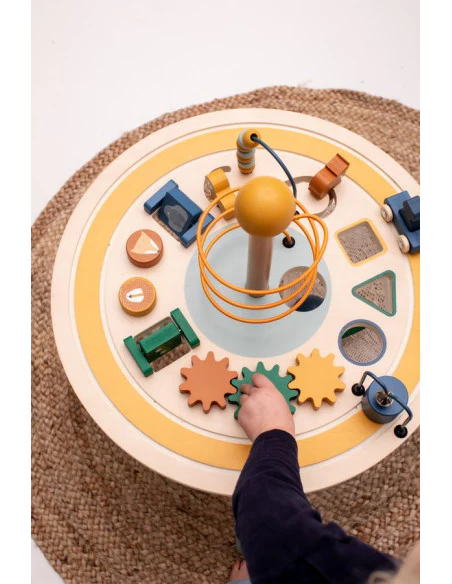 Un véritable terrain de jeu pour les explorateurs en herbe ! Cette table d’activités en bois FSC® est un centre de découvertes qui encourage votre enfant à se tenir debout pour jouer. Engrenages, perles, toboggan à balle… chaque recoin propose une nouvelle stimulation pour la motricité fine et la logique. C’est le jouet idéal pour des heures d’apprentissage autonome et de plaisir sans fin.