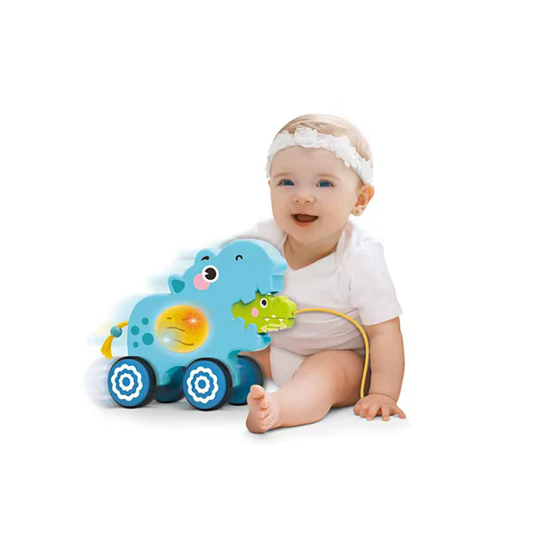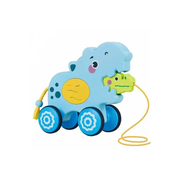 Cette voiture à tirer en forme d’hippopotame coloré stimule la motricité, la coordination et la curiosité des tout-petits.